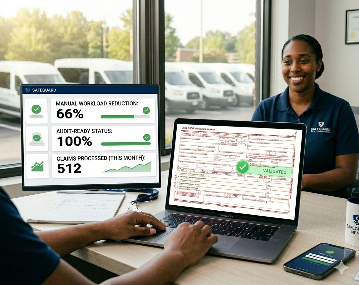 Your CMS-1500 submissions must match your trip documentation exactly. Mileage on the claim must match the GPS record. The procedure code must match the authorized trip type. The member ID must match the Medicaid eligibility verification from the day of the trip.