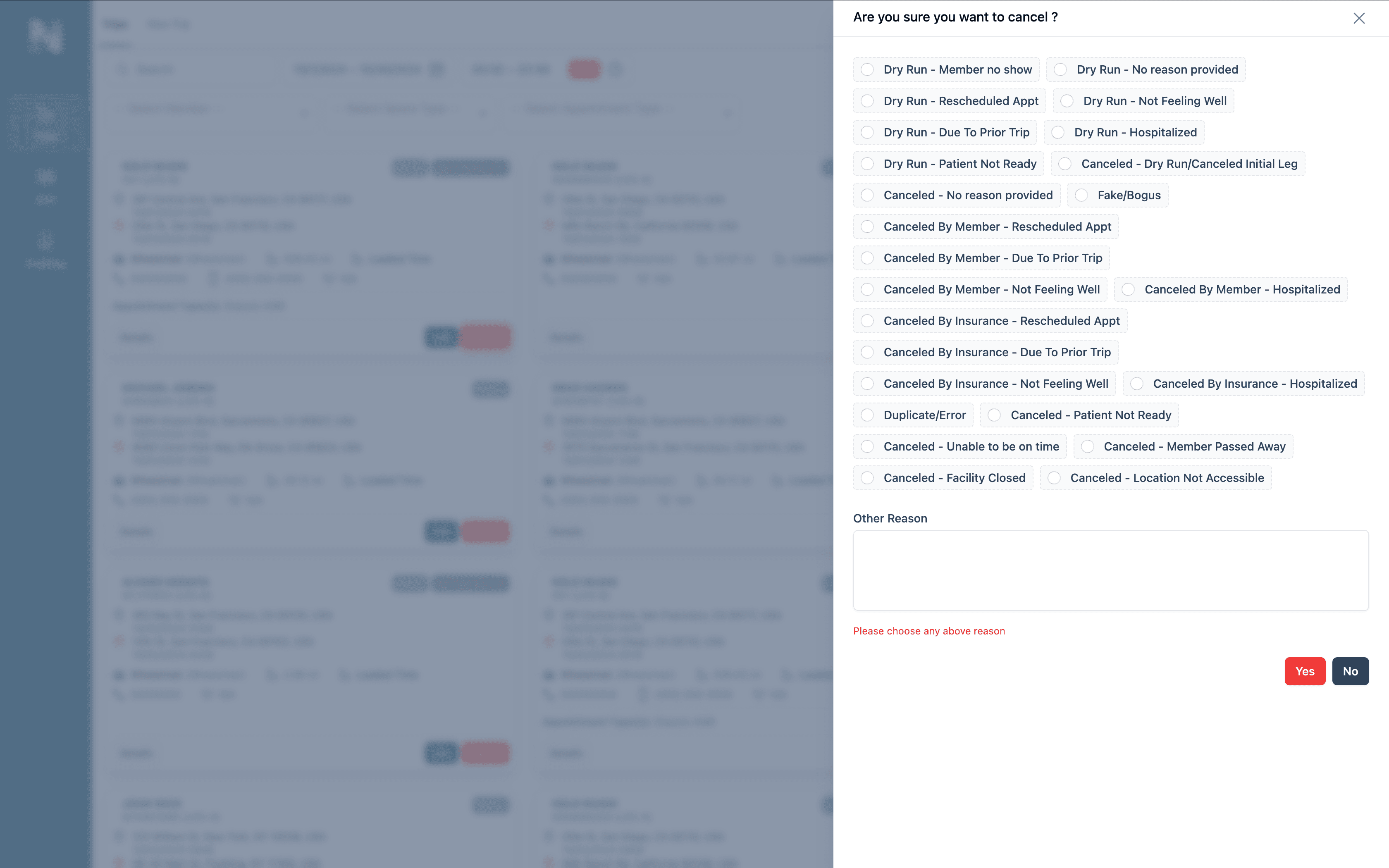 Easily cancel trips when needed and capture the reason for cancellation to enhance service insights and accountability, ensuring transparent operations.